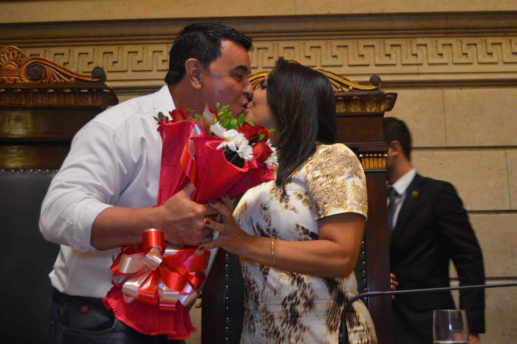 Ao final da celebração, a vereadora Tânia Bastos recebeu uma homenagem do seu esposo, João Severino da Silva. Ele a surpreendeu com buquê de flores.
