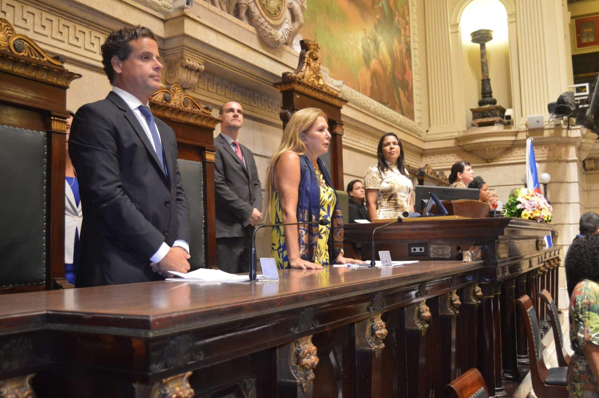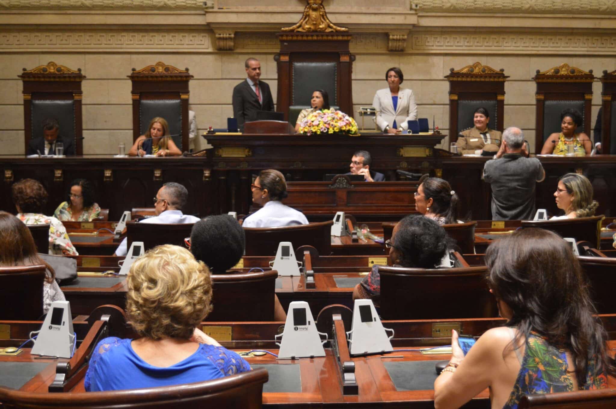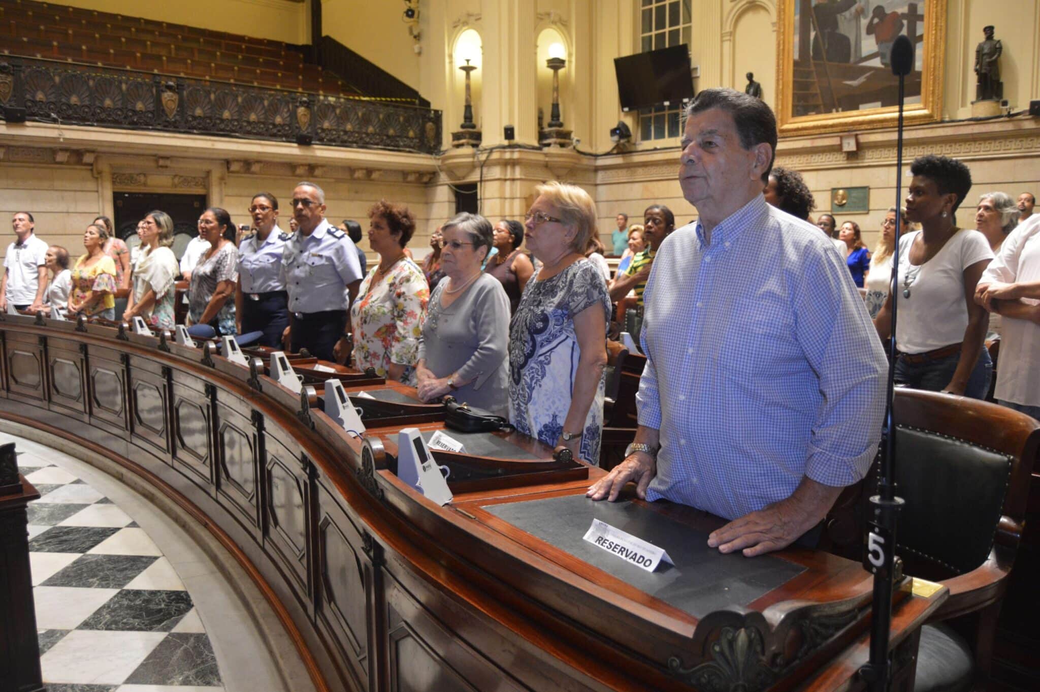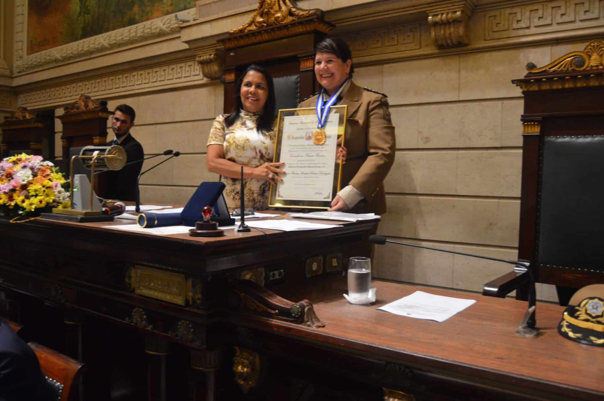 O vereador Leonel Brizola Neto (PSOL) e vereadora Rosa Fernandes (PMDB) homenagearam a professora Janete Ribeiro e a chefe do Cerimonial da Câmara Municipal, Maria Fernanda Matias Alves, respectivamente.