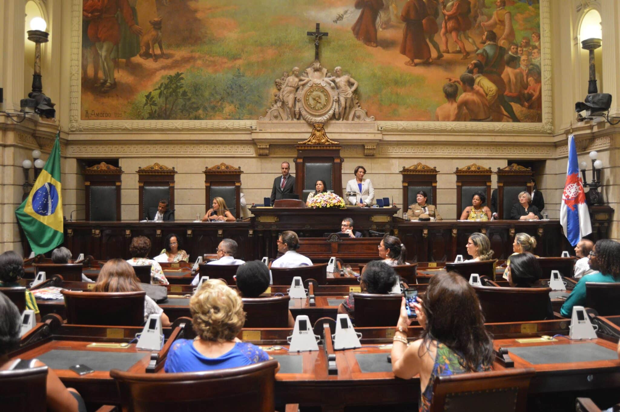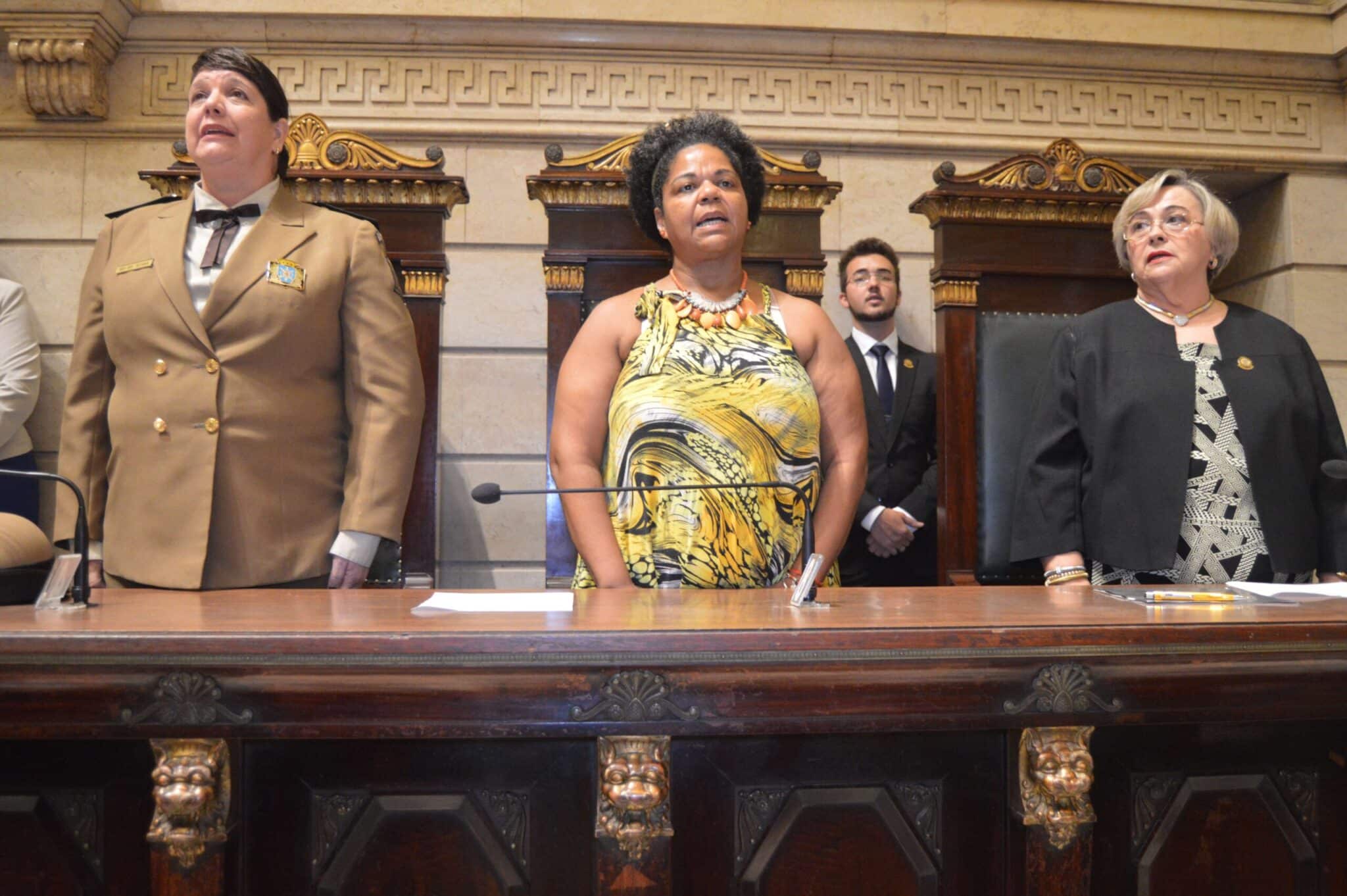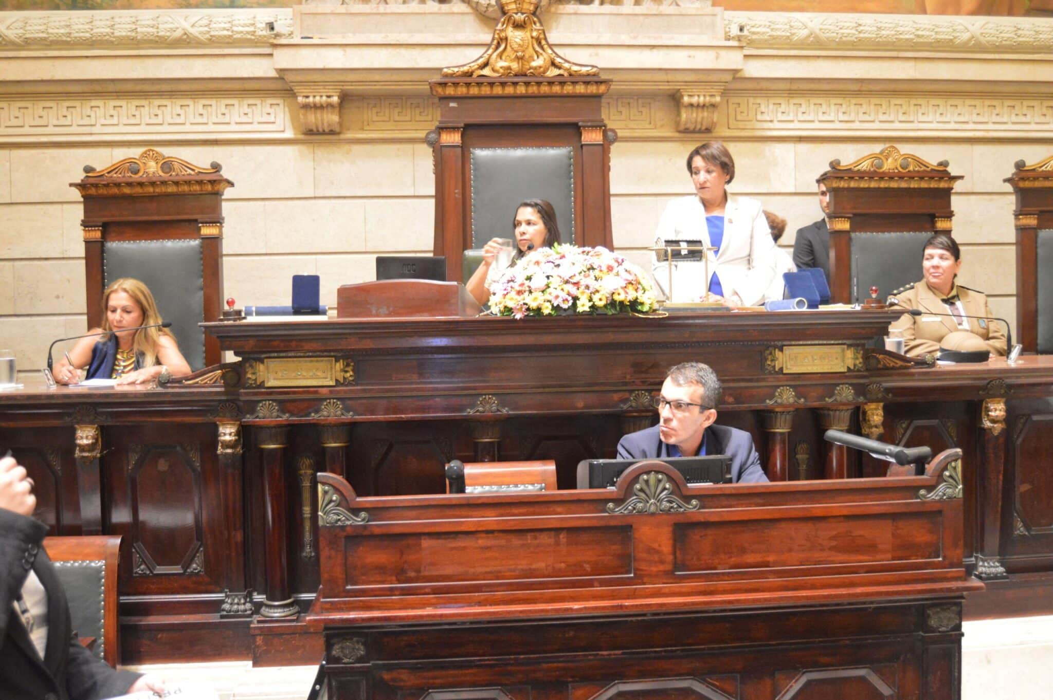O vereador Leonel Brizola Neto (PSOL) e vereadora Rosa Fernandes (PMDB) homenagearam a professora Janete Ribeiro e a chefe do Cerimonial da Câmara Municipal, Maria Fernanda Matias Alves, respectivamente.
