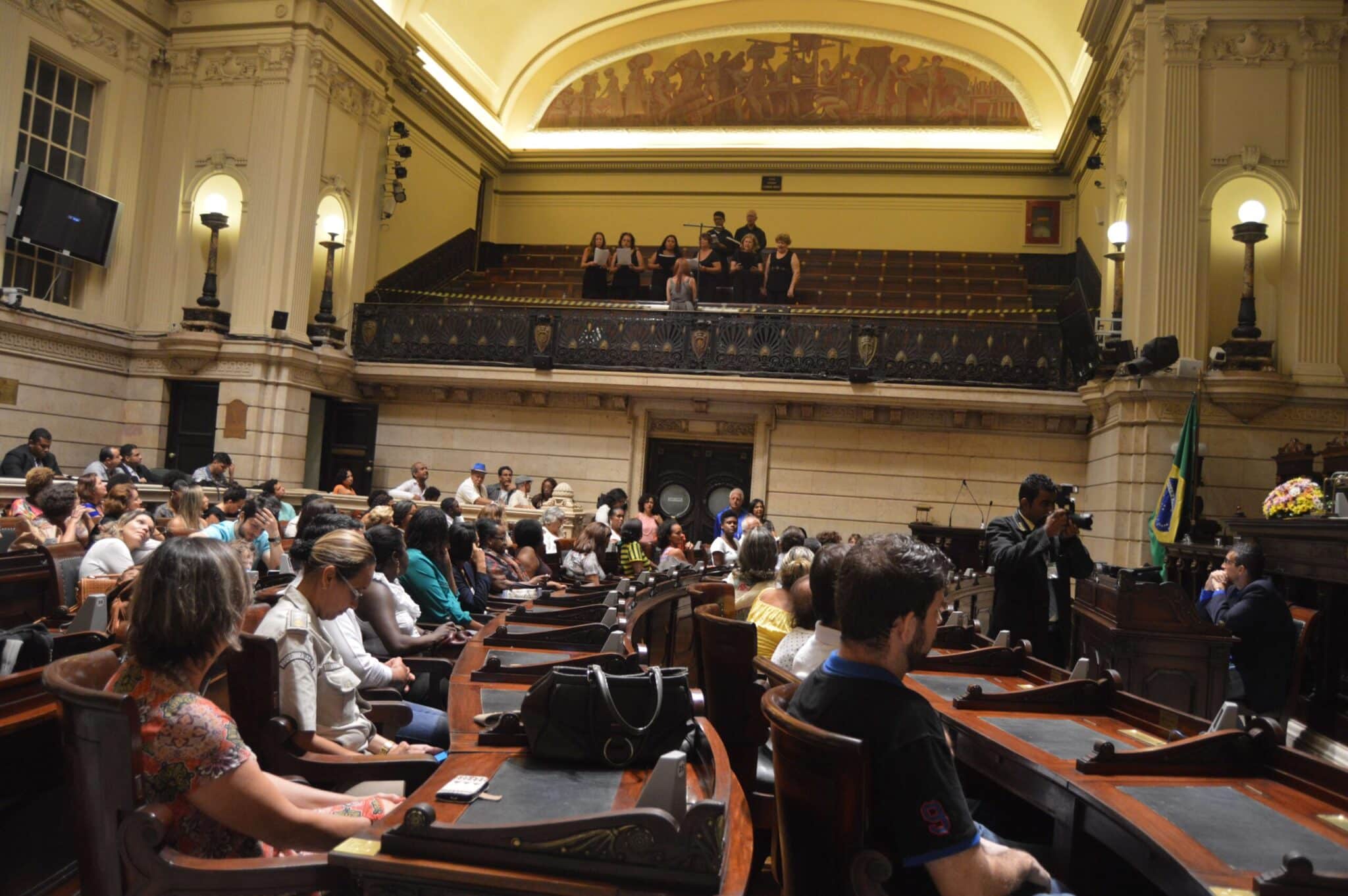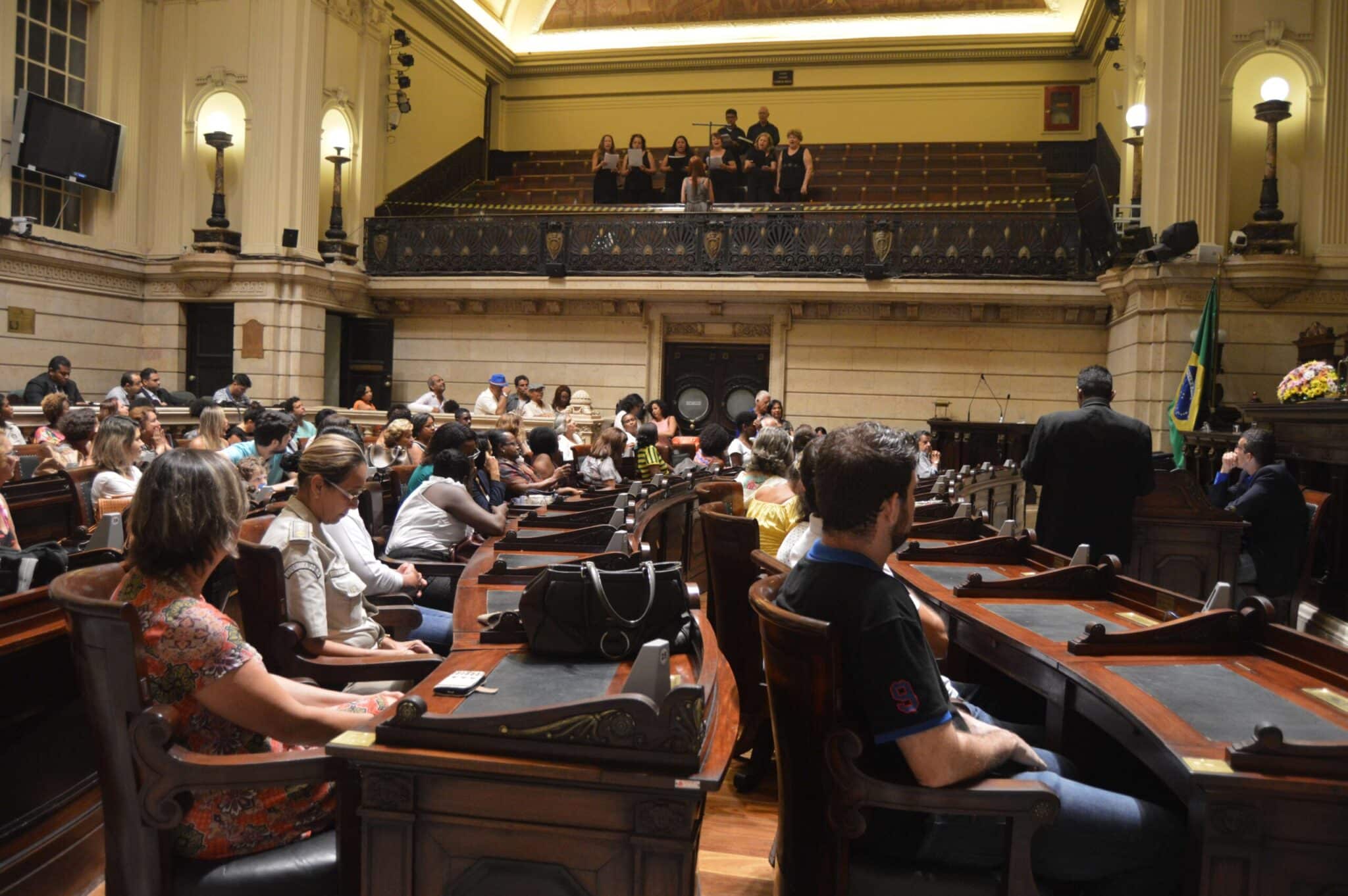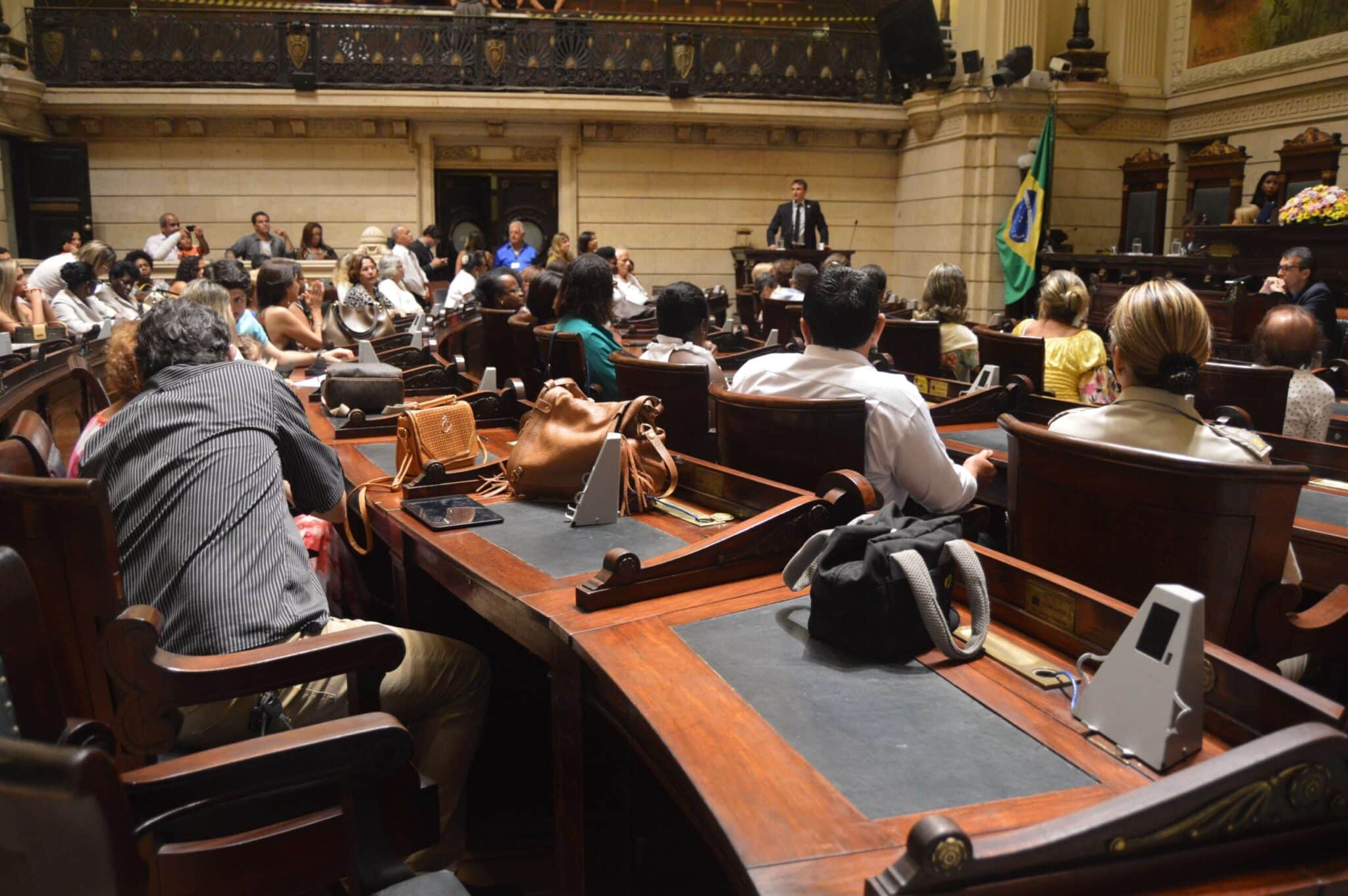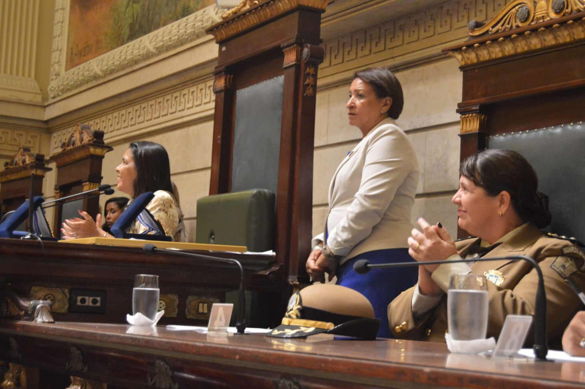 O vereador Leonel Brizola Neto (PSOL) e vereadora Rosa Fernandes (PMDB) homenagearam a professora Janete Ribeiro e a chefe do Cerimonial da Câmara Municipal, Maria Fernanda Matias Alves, respectivamente.