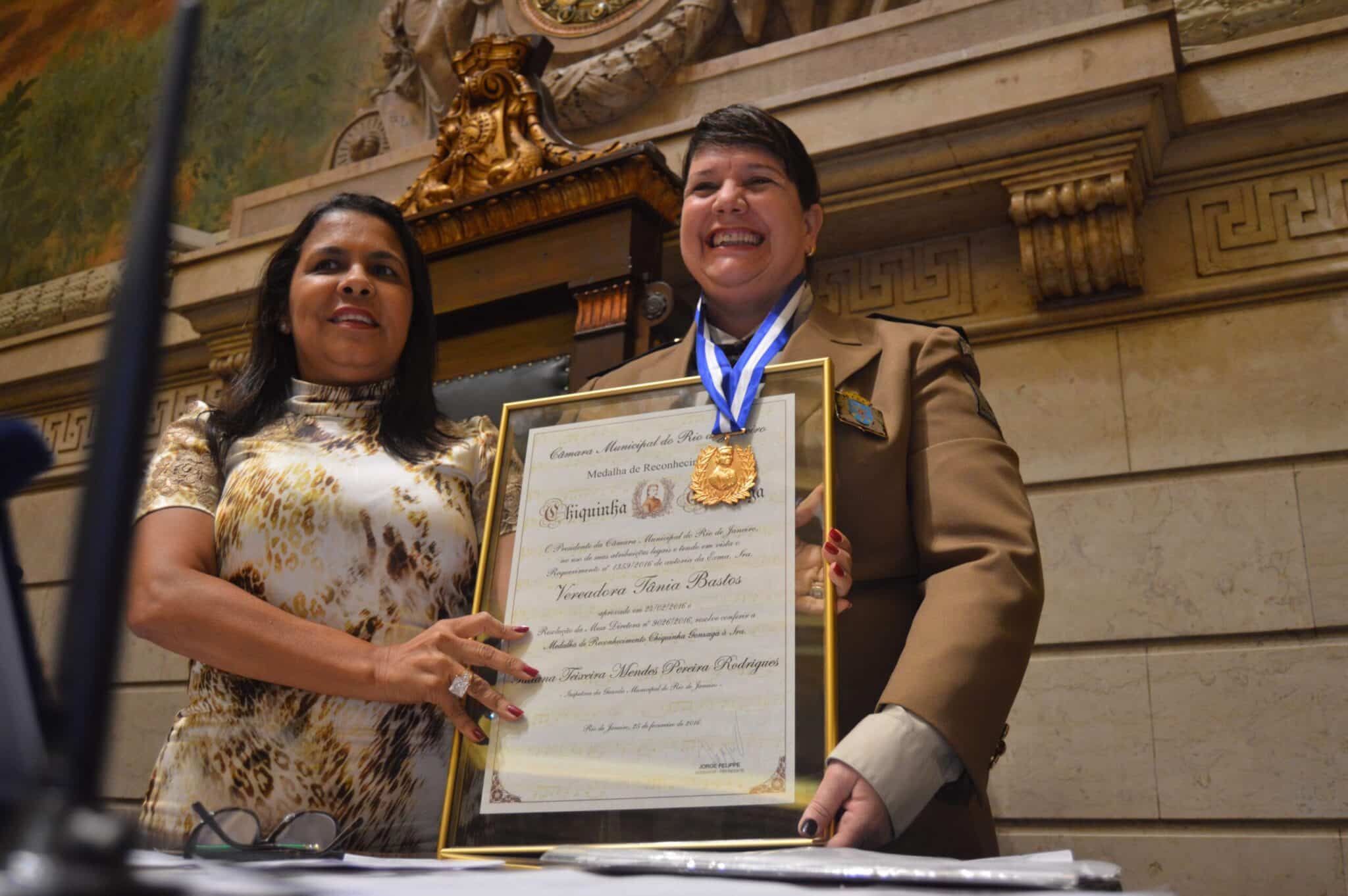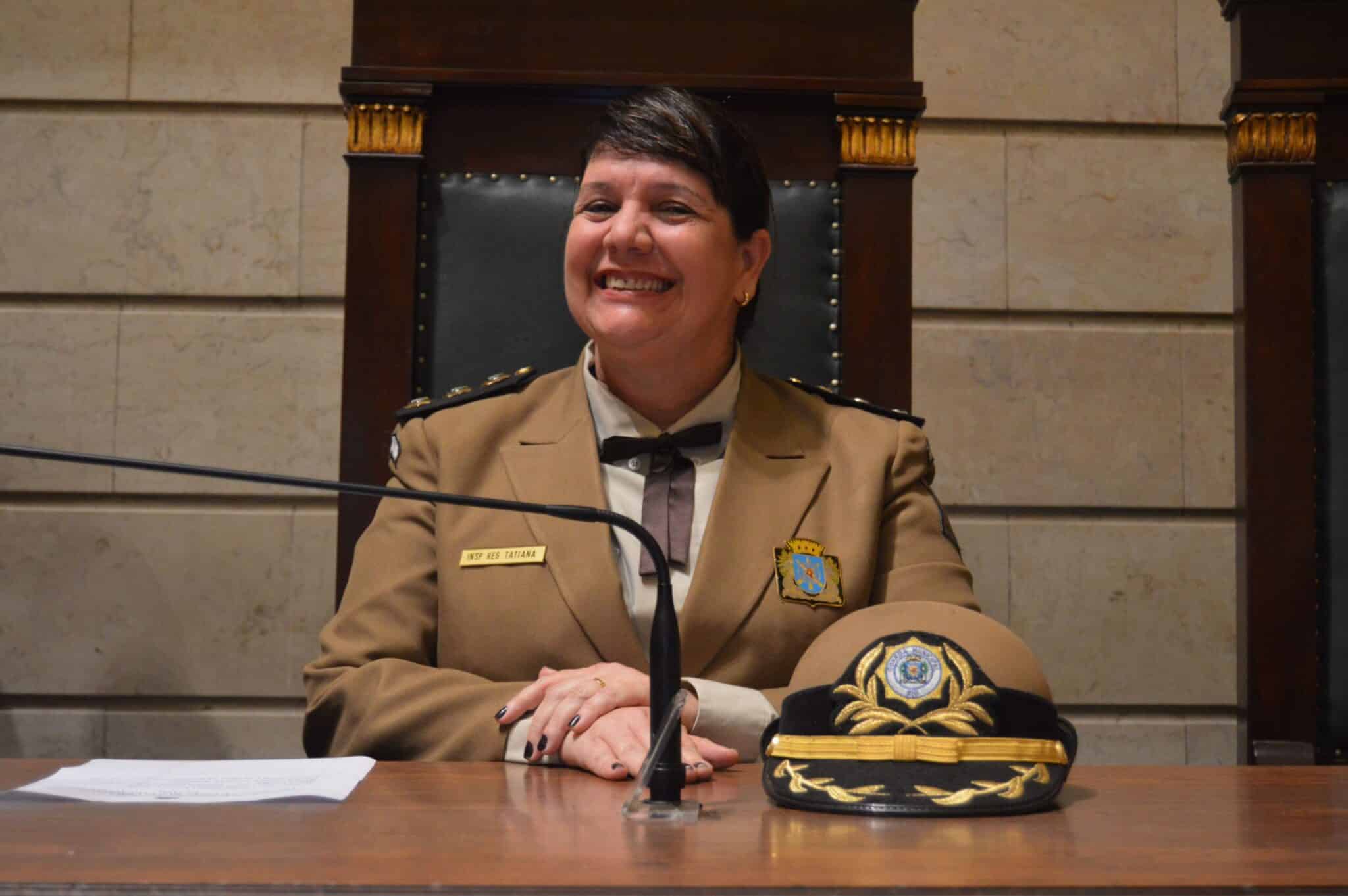 A vereadora deu início à solenidade explicando a importância de Chiquinha Gonzaga e ressaltando a semelhança desta mulher com a sua homenageada. “Tatiana é a mulher de maior posto na corporação. Condição semelhante a da nossa compositora, pianista e primeira mulher a reger uma orquestra no Brasil. Ela vem exercendo o seu papel de civilidade, boas relações, cortesia, respeitando acima de tudo o ser humano, zelando pela segurança patrimonial e pelos bens dos cidadãos”, disse.