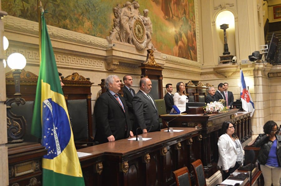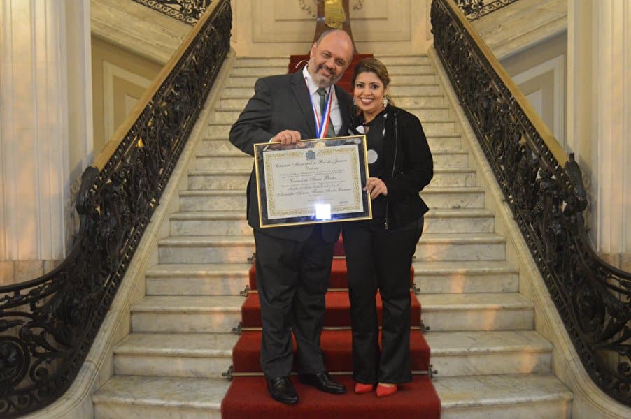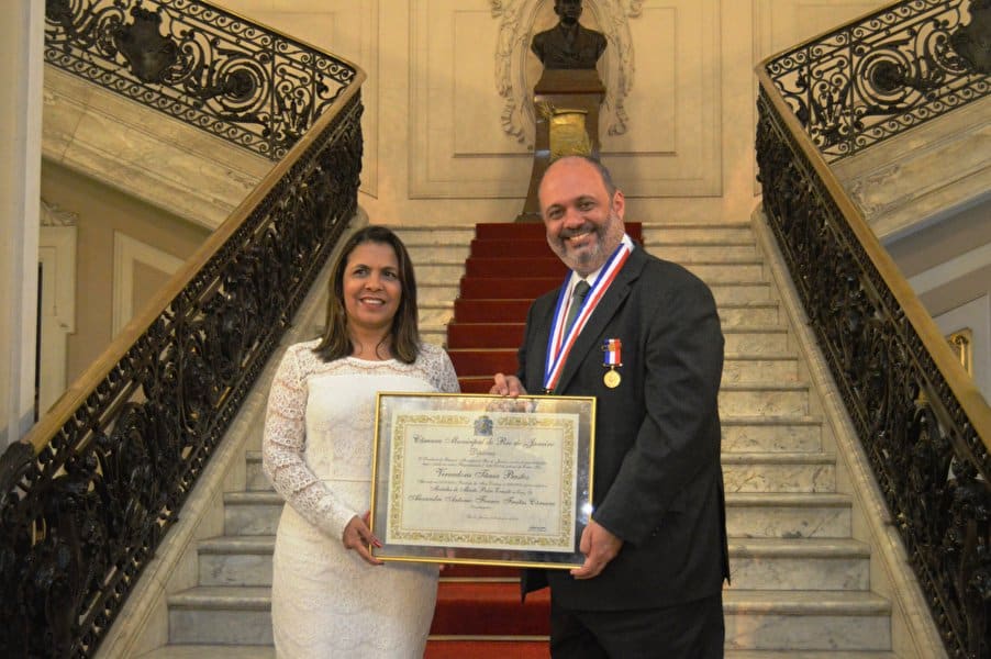 O desembargador Alexandre Freitas Câmara foi homenageado, nesta segunda-feira (06/06), com a mais alta comenda da Câmara dos Vereadores, a Medalha Pedro Ernesto, pela vereadora Tânia Bastos – presidente da Comissão de Defesa da Mulher da Câmara Municipal do Rio de Janeiro.