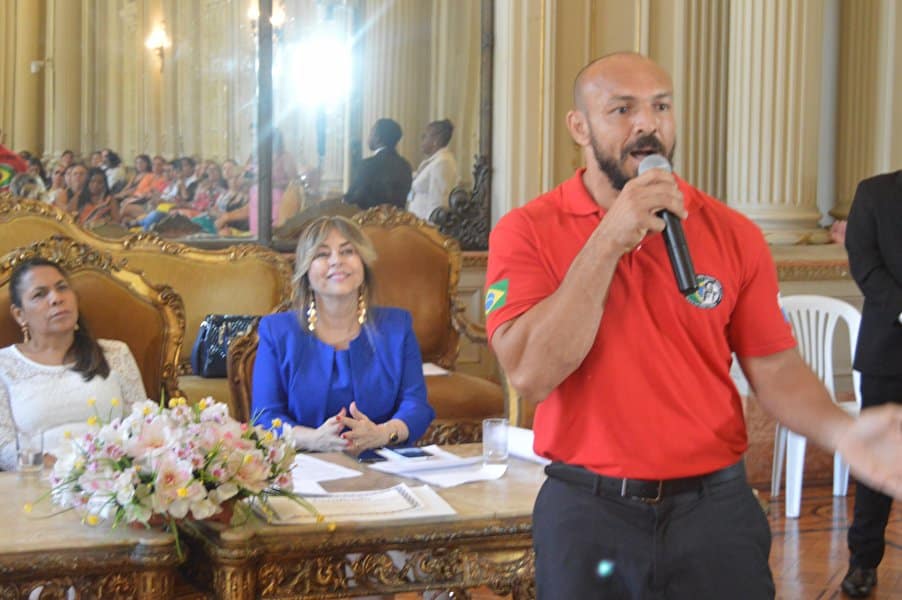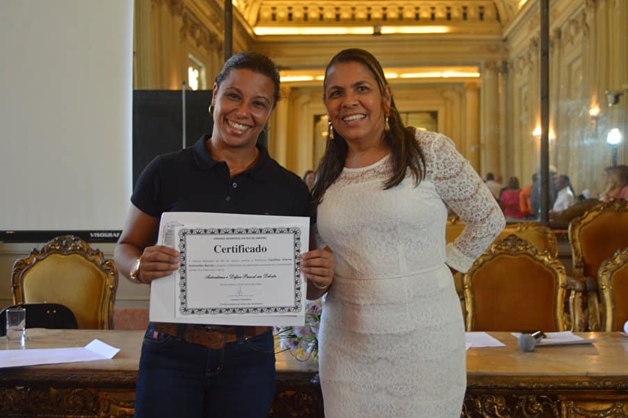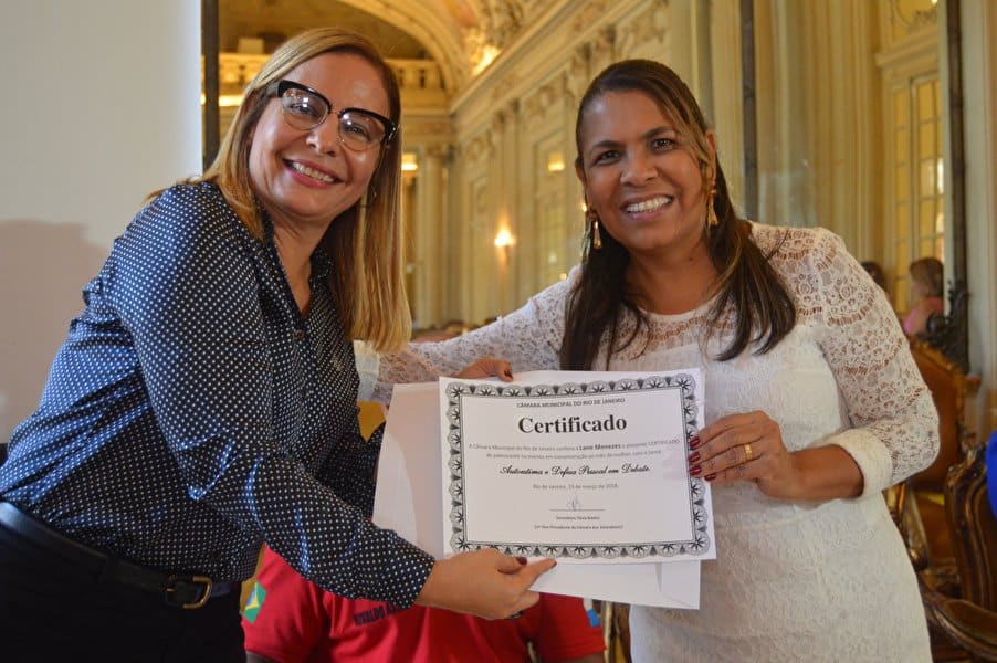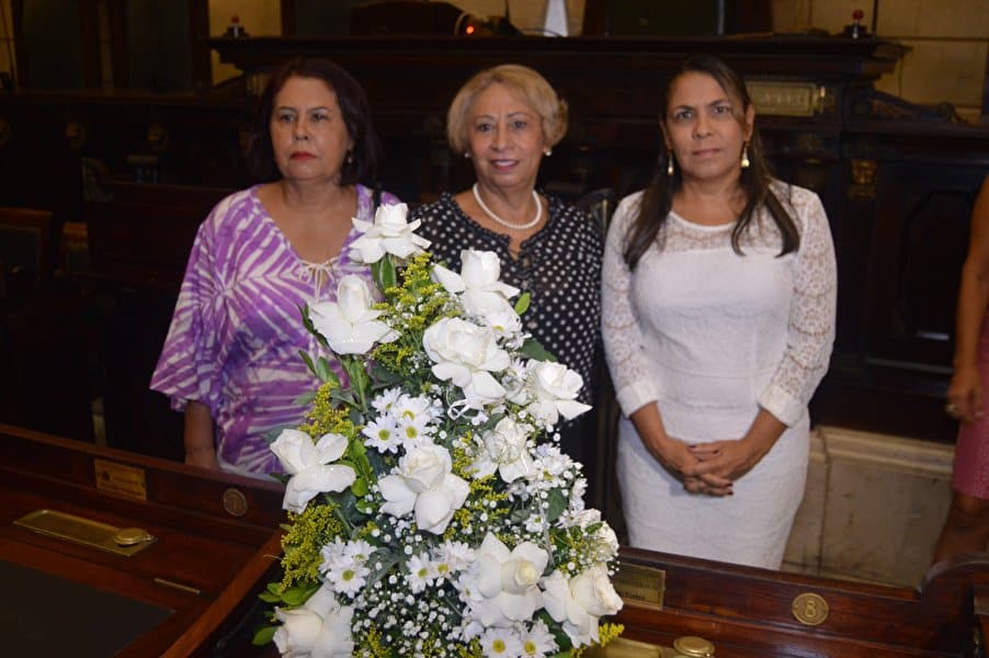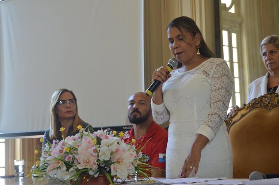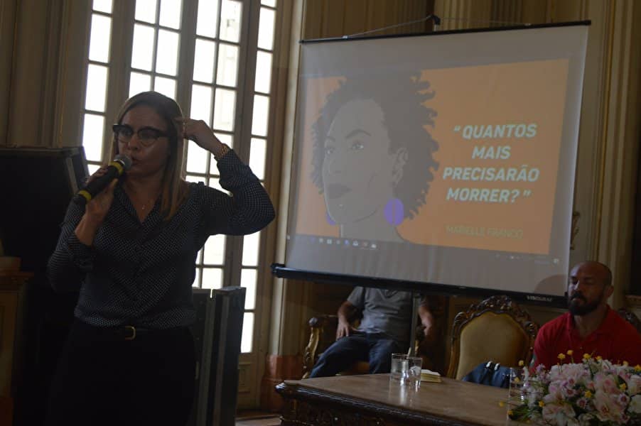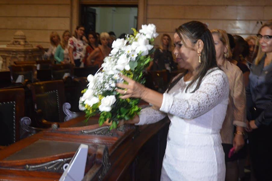 “Decidimos não cancelar este momento porque conhecemos e presenciamos a luta constante desta mulher guerreira em favor de todas nós”, disse Tânia que ainda prestou uma homenagem à memória de Marielle, colocando um arranjo de rosas brancas na bancada, onde ela se sentava no plenário durante as sessões.