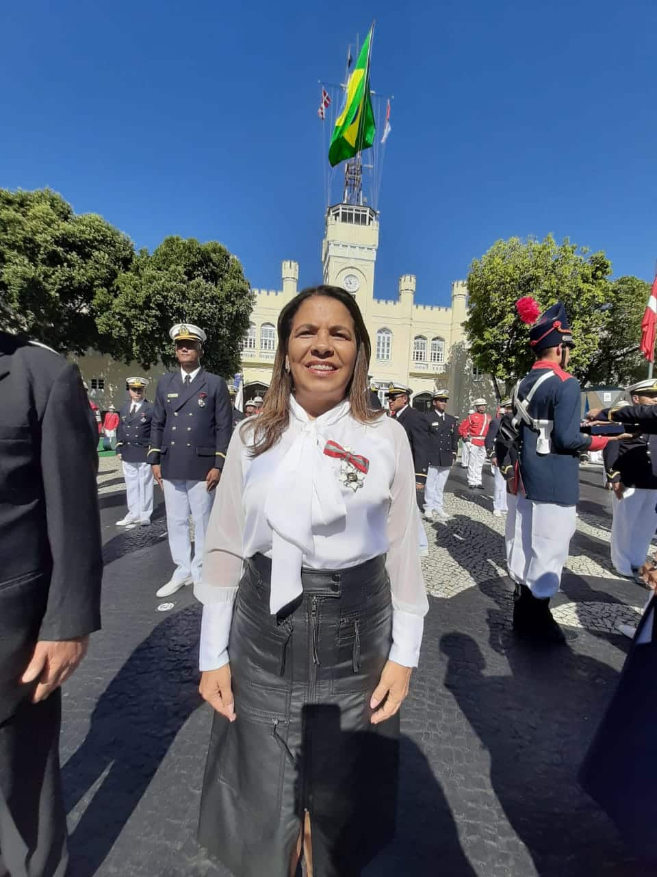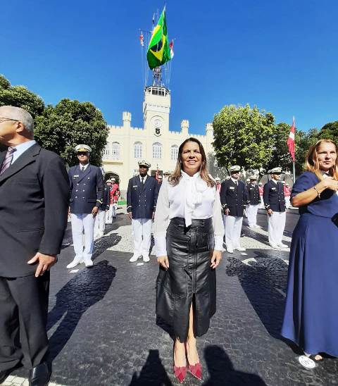 Com muita honra, a vereadora Tânia Bastos participou, na manhã desta terça-feira (11), das comemorações da Batalha do Riachuelo, no Comando Geral dos Fuzileiros Navais, no centro do Rio. Na oportunidade, a parlamentar recebeu a medalha de Mérito Naval – condecoração dada às personalidades que se destacaram pelos relevantes serviços prestados à Marinha.